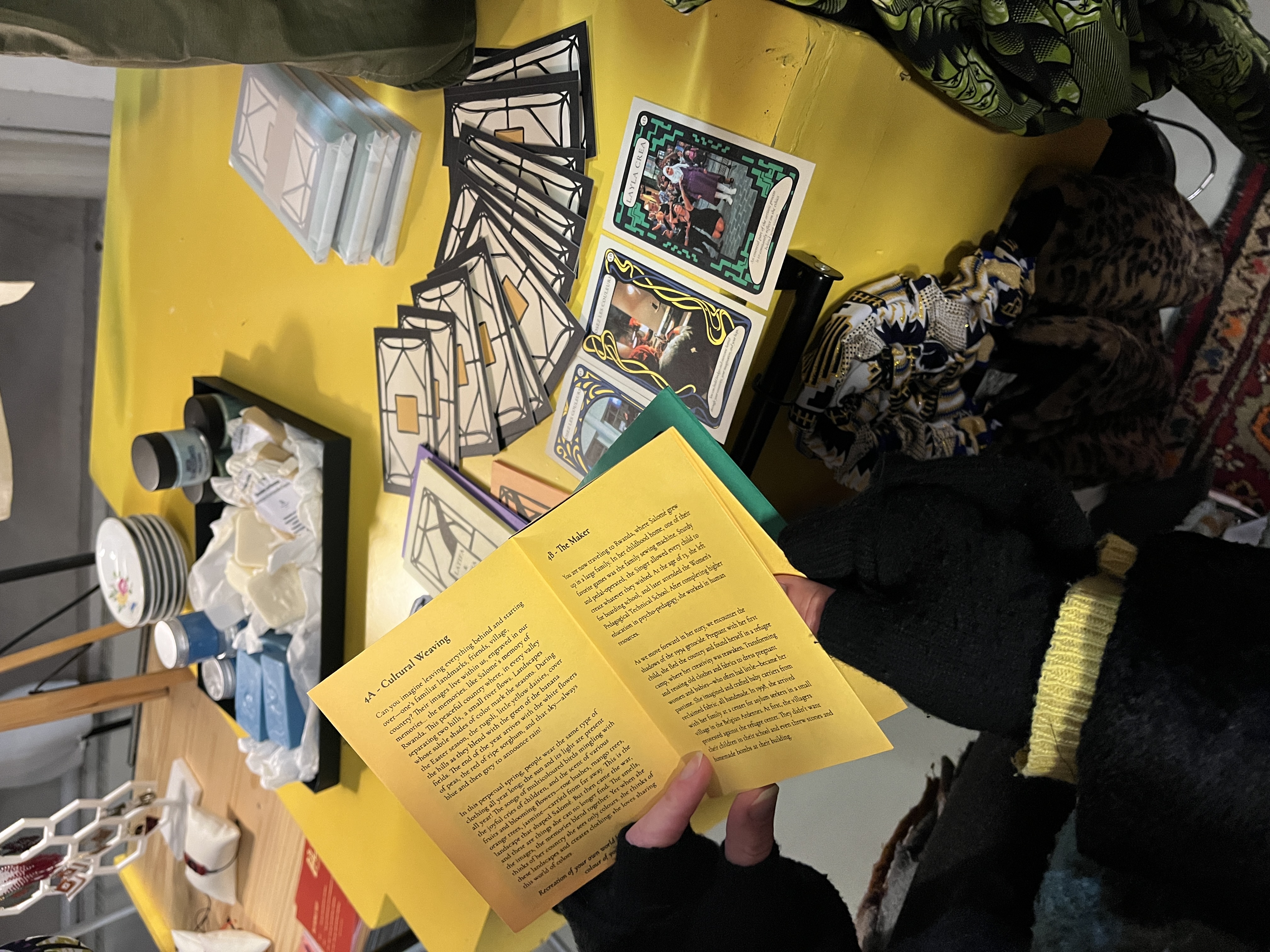 The Bildy Mobile Shop tells the story of six women, their talents and history. It is a foldable, mobile market stall that creates conversations and exchanges about handcrafted knowledge passed on. It is a card game, a fortune-telling wisdom tool, a way to find new perspectives. To question things we take for granted. From positions we hold to the items we own.