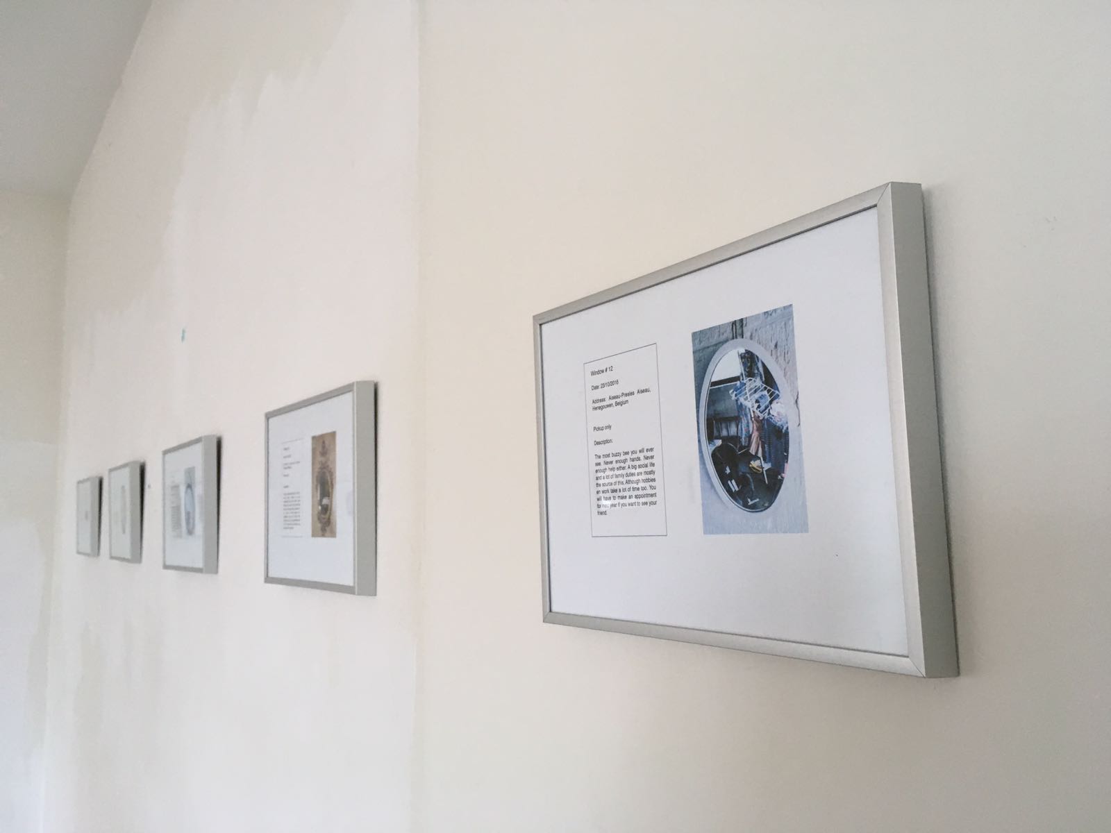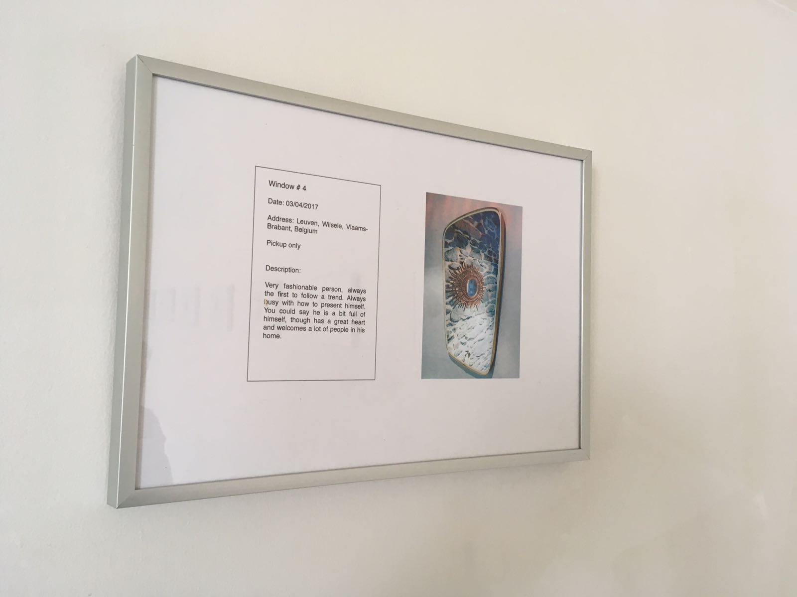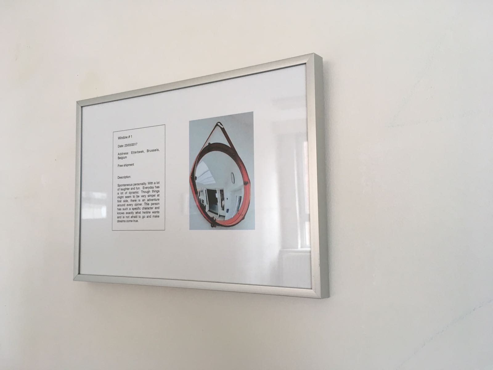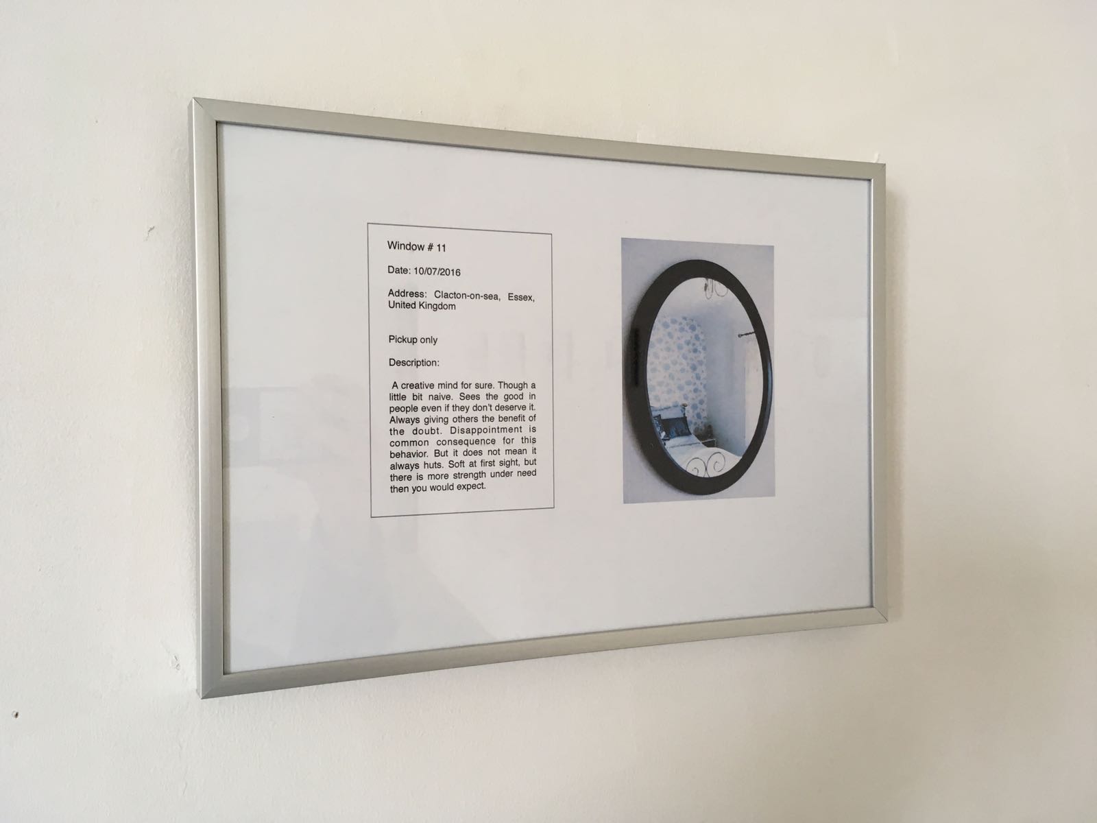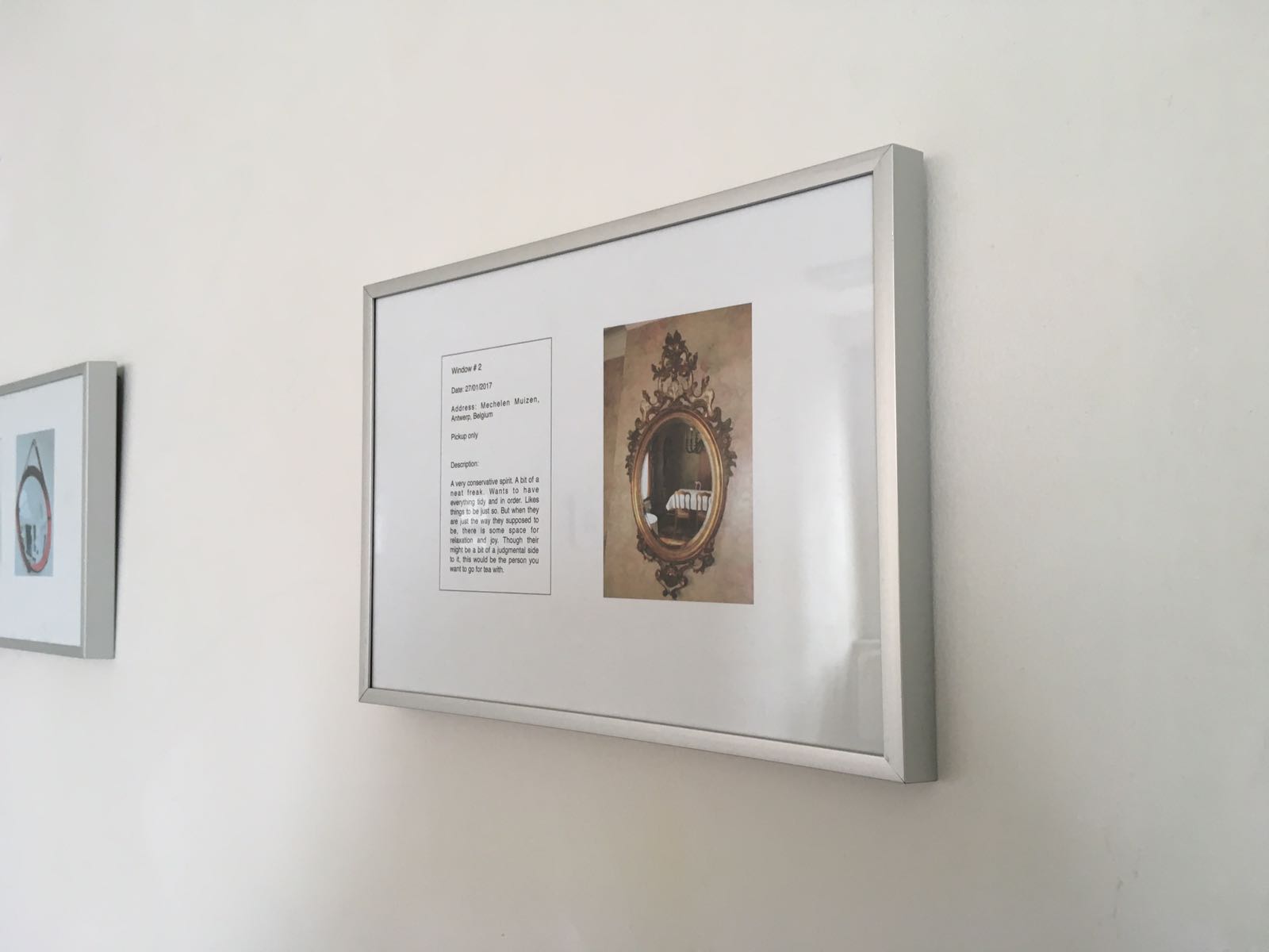12 pictures of mirrors with little biographies in the style of the sales add of the mirrors on a secondhand website.